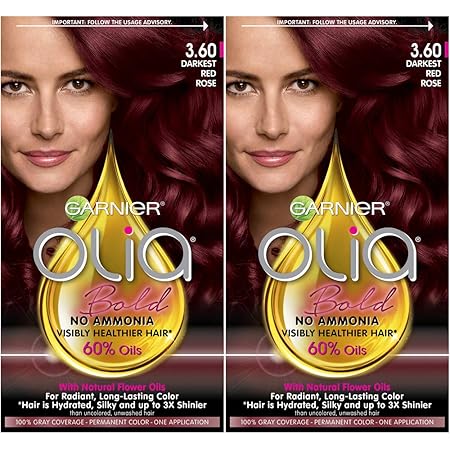 Amazon Com Garnier Olia Ammonia Free Brilliant Color Oil Rich Permanent Hair Color 3 60 Darkest Red Rose Pack Of 1 Red Hair Dye Packaging May Vary Beauty Personal Care